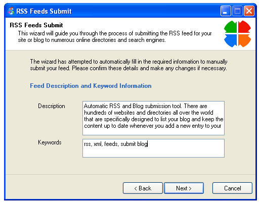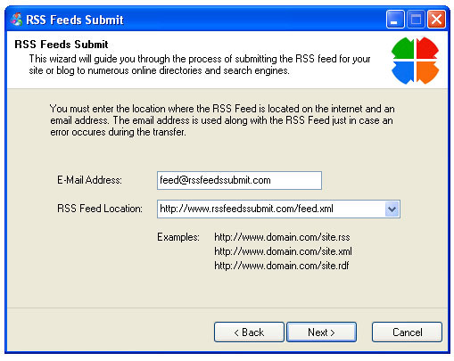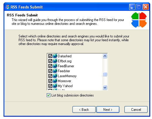 RSS Feeds Submit Screenshots